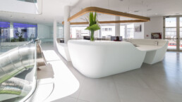 Un settore per cui il materiale compatto KRION® è altamente raccomandato è quello sanitario, dal momento che le sue proprietà antibatteriche e la sua composizione senza additivi, lo rendono il materiale perfetto per i centri medici, di consultazione negli ospedali e perfino nelle sale operatorie dove le condizioni igieniche devono essere estreme.