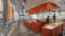 più rigorosi in fatto di igiene. Krion® è un materiale che conferisce sicurezza, eleganza e raffinatezza senza tempo agli spazi, per fornire la migliore presentazione di ciascun prodotto. Il Solid Surface Krion® offre inoltre una vasta gamma di possibilità nella progettazione di spazi commerciali, dando l’opportunità di personalizzare la proria imagine creando ambienti retroilluminati caldi ed accoglienti.